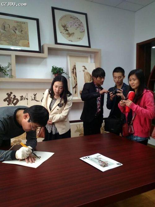 觀看烙畫藝術(shù)家創(chuàng)作“鴛鴦戲水”