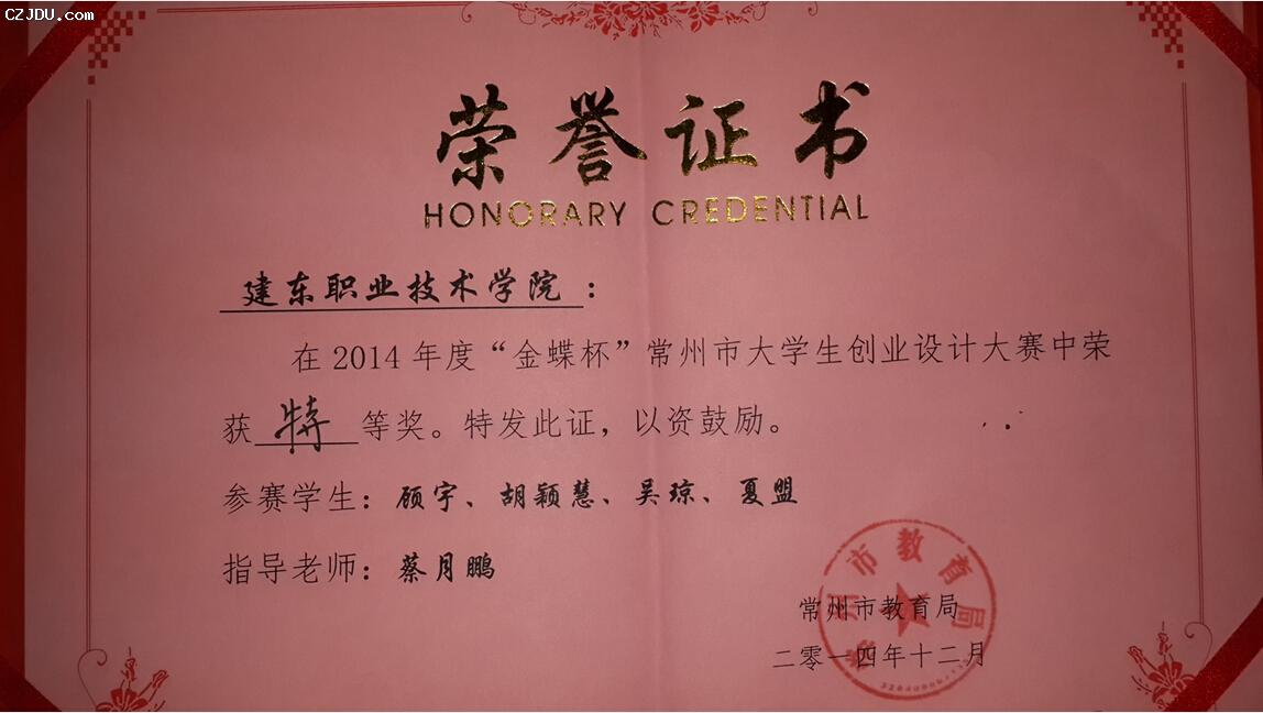 我院學(xué)生在2014年度常州市大學(xué)生創(chuàng)業(yè)設(shè)計大賽中斬獲特等獎