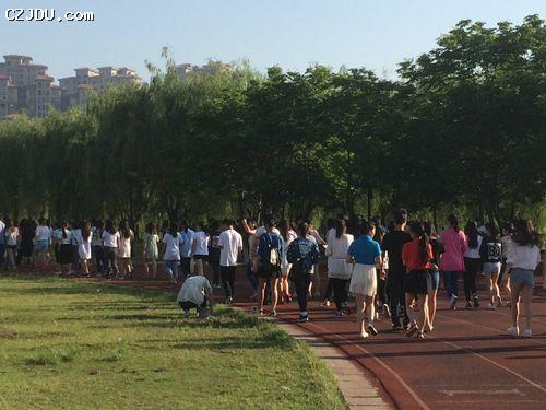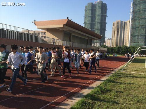 晨練結(jié)束后,學(xué)生有序退場(chǎng)