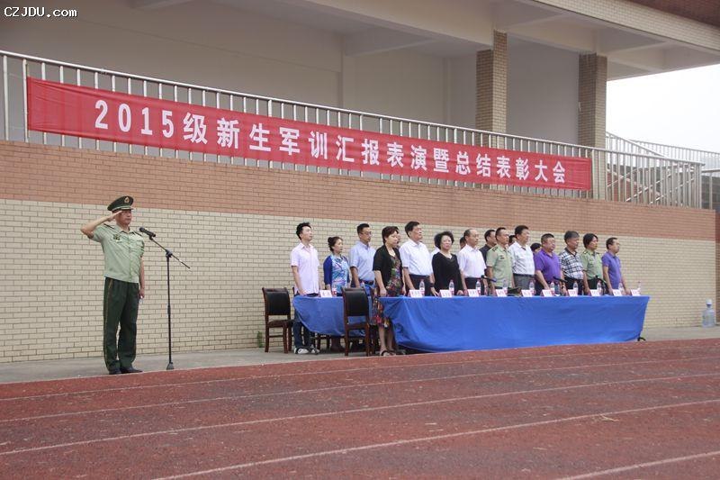 黨委書記丁高明作了軍訓總結。丁書記首先代表學院黨委、行政和全體教職員工,向支持和關心我院軍訓工作的武警水電五支隊的各位教官表示衷心的感謝!向負責組織實施軍訓工作的全體教職員工表示親切的問候!向勝利完成軍訓工作的2015級全體新同學表示熱烈的祝賀!丁書記指出,通過軍訓,同學們培養(yǎng)了良好的集體主義精神,加強了組織紀律性,增強了法制觀念;通過軍訓,同學們磨練了意志,增強了自我約束能力;通過軍訓,同學們鍛煉了體魄,增長了知識,開闊了眼界。在教官的帶領下,同學們以飽滿的熱情、昂揚的斗志,克服各種困難,團結友愛、刻苦訓練,初步掌握了基本的軍事理論知識和技能,培養(yǎng)了自我管理能力,提高了綜合素質。他指出通過先進營、連、文明宿舍、軍訓積極分子等一些評優(yōu)爭先活動的開展,同學們的集體凝聚力進一步增強,積極進取、團結向上、有戰(zhàn)斗力的班集體正在形成。這些都值得我們在今后的學習、生活中進一步發(fā)揚光大。