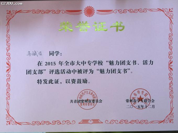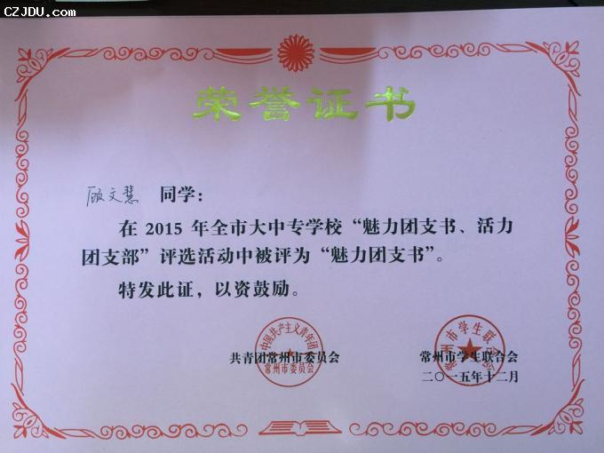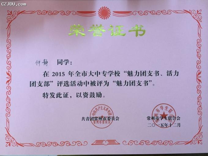 同時,我院有五個優(yōu)秀團(tuán)支書被評選為“魅力團(tuán)支書”,分別為:電子系14級城市軌道交通控制班武騰飛、機(jī)械系14級汽車技術(shù)服務(wù)與營銷班仲靜、建筑系14級工程造價班韋斌佳、經(jīng)管系14級會計5班唐娟、藝術(shù)系14級學(xué)前教育2班顧文慧。