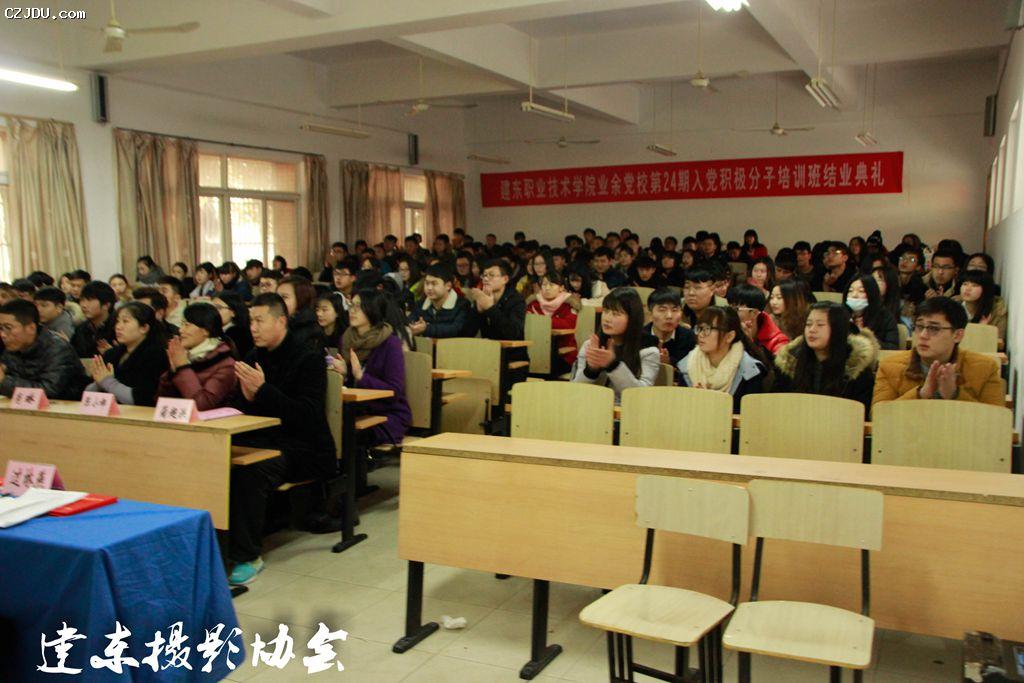雄壯的國歌緩緩奏響,整個會場莊重而又嚴肅。首先由第一黨總支副書記、學(xué)生處副處長季艷同志宣布業(yè)余黨校第24期培訓(xùn)班結(jié)業(yè)情況:通過為期一個月的黨章知識、十八大精神學(xué)習(xí)、專題講座、討論、參觀實踐、個人總結(jié)及筆試,張健等163名同學(xué)通過業(yè)余黨校第24期培訓(xùn)班各項考核,順利結(jié)業(yè)。