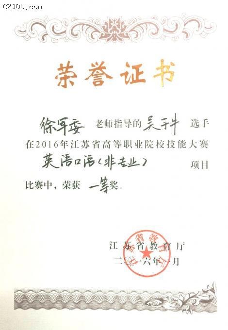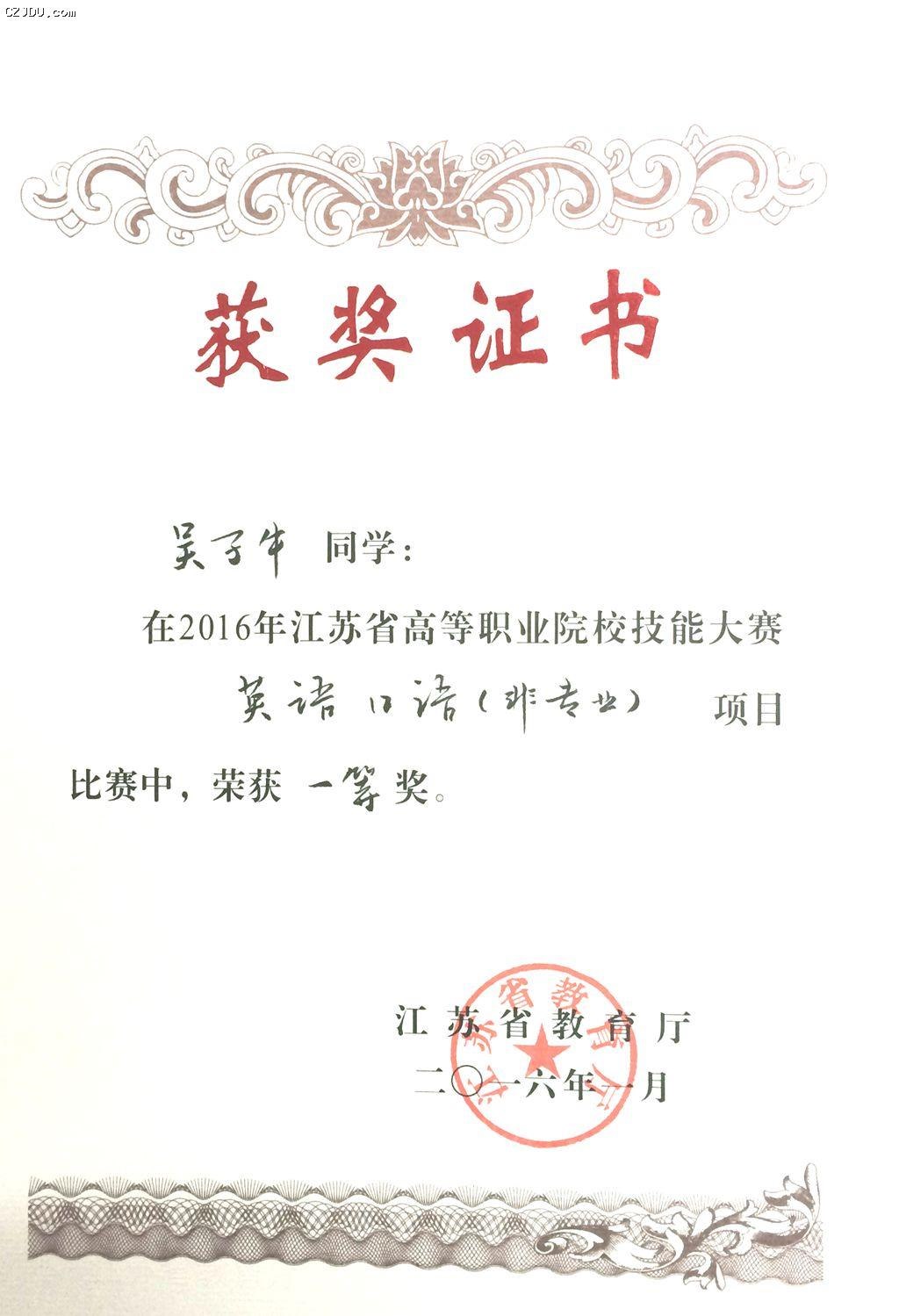 吳子牛同學(xué)獲獎(jiǎng)證書