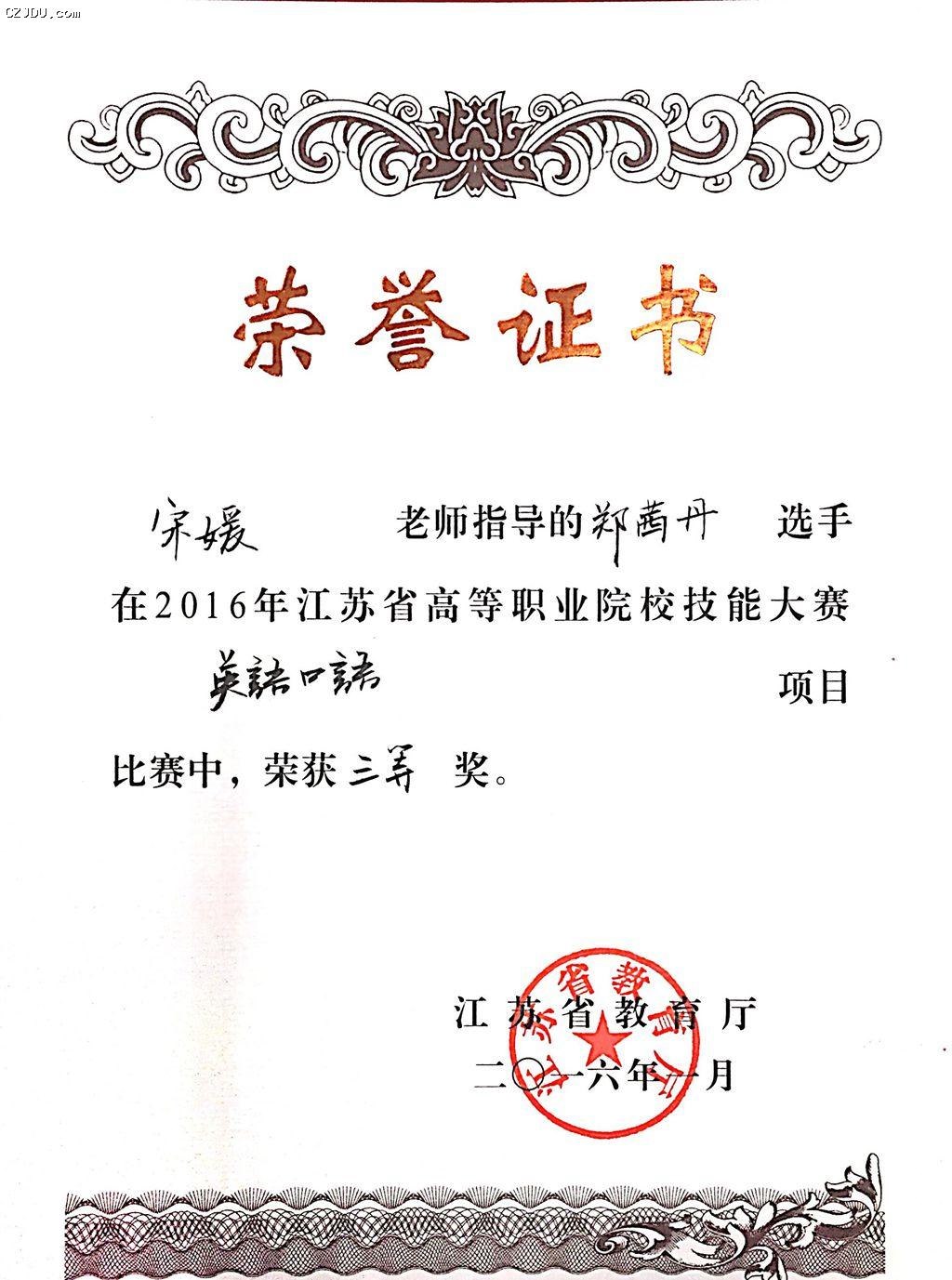 鄭茜丹同學(xué)獲獎(jiǎng)證書