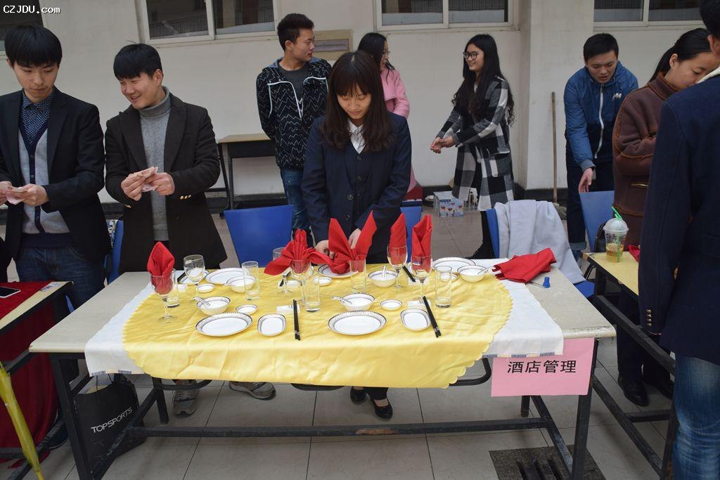 活動現(xiàn)場到處都能看到各個(gè)專業(yè)能手在進(jìn)行展示,你看,經(jīng)管系會計(jì)專業(yè)的姑娘們流利而準(zhǔn)確的點(diǎn)鈔姿勢,讓人嘆為觀止;酒店專業(yè)的餐桌擺臺、功夫茶展示、調(diào)酒展示等足以吸引眾人的眼球;涉外護(hù)理專業(yè)的學(xué)生在給各位師生測量血壓;高鐵乘務(wù)專業(yè)的同學(xué)們穿著漂亮的制服在一遍又一遍地演示者正確的商務(wù)禮儀坐姿、站姿等,多么美麗的一道風(fēng)景線啊。這邊,建筑系工程造價(jià)和工程測量的學(xué)生不甘示弱,水準(zhǔn)儀、經(jīng)緯儀齊上陣,給各位有興趣的學(xué)生講解基本用途和操作。電子系的學(xué)生將機(jī)電一體化、應(yīng)用電子、計(jì)算機(jī)應(yīng)用等專業(yè)上學(xué)到的變頻調(diào)速、單片機(jī)控制以及動畫多媒體技術(shù)搬到了活動現(xiàn)場,讓大家體驗(yàn)了一把小型計(jì)算機(jī)和電機(jī)的強(qiáng)大功能和使用方法。還有機(jī)械系的汽車檢測與維修、模具設(shè)計(jì)與制造專業(yè),學(xué)生們把汽車發(fā)動機(jī)搬到了現(xiàn)場,讓大家認(rèn)識各個(gè)零部件,還給有興趣的學(xué)生介紹游標(biāo)卡尺的使用方法。藝術(shù)系的學(xué)前教育和室內(nèi)設(shè)計(jì)專業(yè),更是人才百出,有學(xué)生在現(xiàn)場作畫,有學(xué)生在現(xiàn)場演奏,好不熱鬧,走過路過的學(xué)生也體驗(yàn)了基礎(chǔ)的畫畫常識和歌唱技巧。