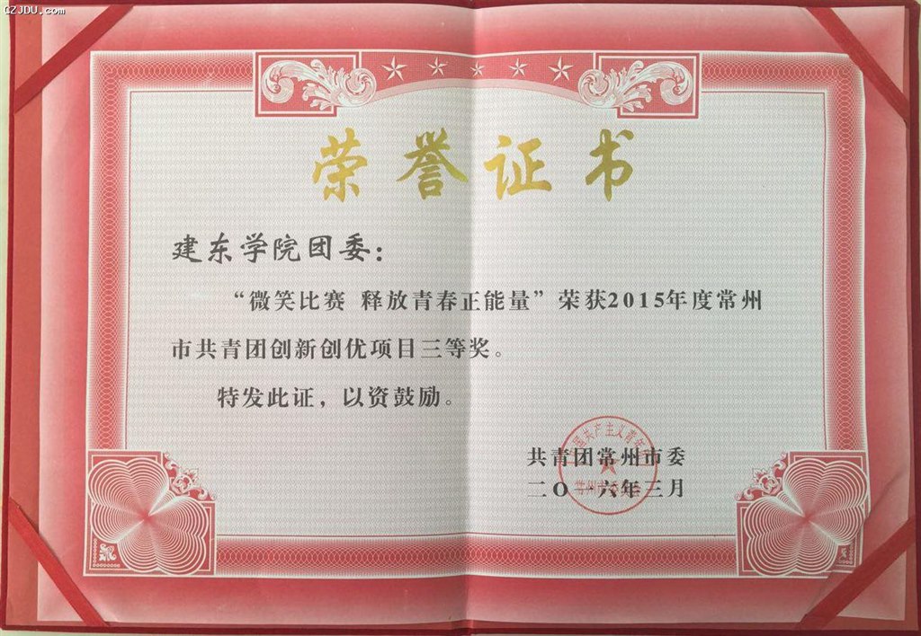 我院團(tuán)委獲得 “2015年度常州市先進(jìn)團(tuán)委”榮譽稱號