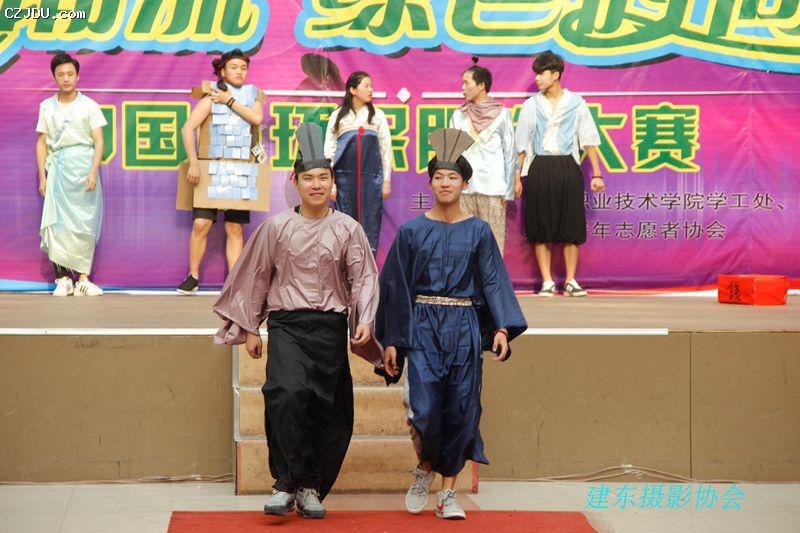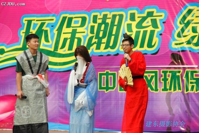 本次比賽分為服裝設(shè)計(jì)和服裝展示兩個(gè)環(huán)節(jié)。參賽選手在前期的“服裝設(shè)計(jì)”環(huán)節(jié)圍繞萬世“衣”系的中國風(fēng)主題,通過對舊衣服、舊床單、舊蚊帳、廢塑料袋、橫幅等廢棄物進(jìn)行再次利用和創(chuàng)作,形成本小組的參賽作品。最后在“服裝展示”環(huán)節(jié)以一個(gè)具有代表性的歷史故事情節(jié)為背景,用簡短小話劇和小品的形式展示出來,讓觀眾在欣賞一件件優(yōu)秀作品的同時(shí)還能融入一段有特色的小故事中。比賽現(xiàn)場,匠心獨(dú)運(yùn)的設(shè)計(jì)加上精湛的演技,贏得觀眾的陣陣掌聲。