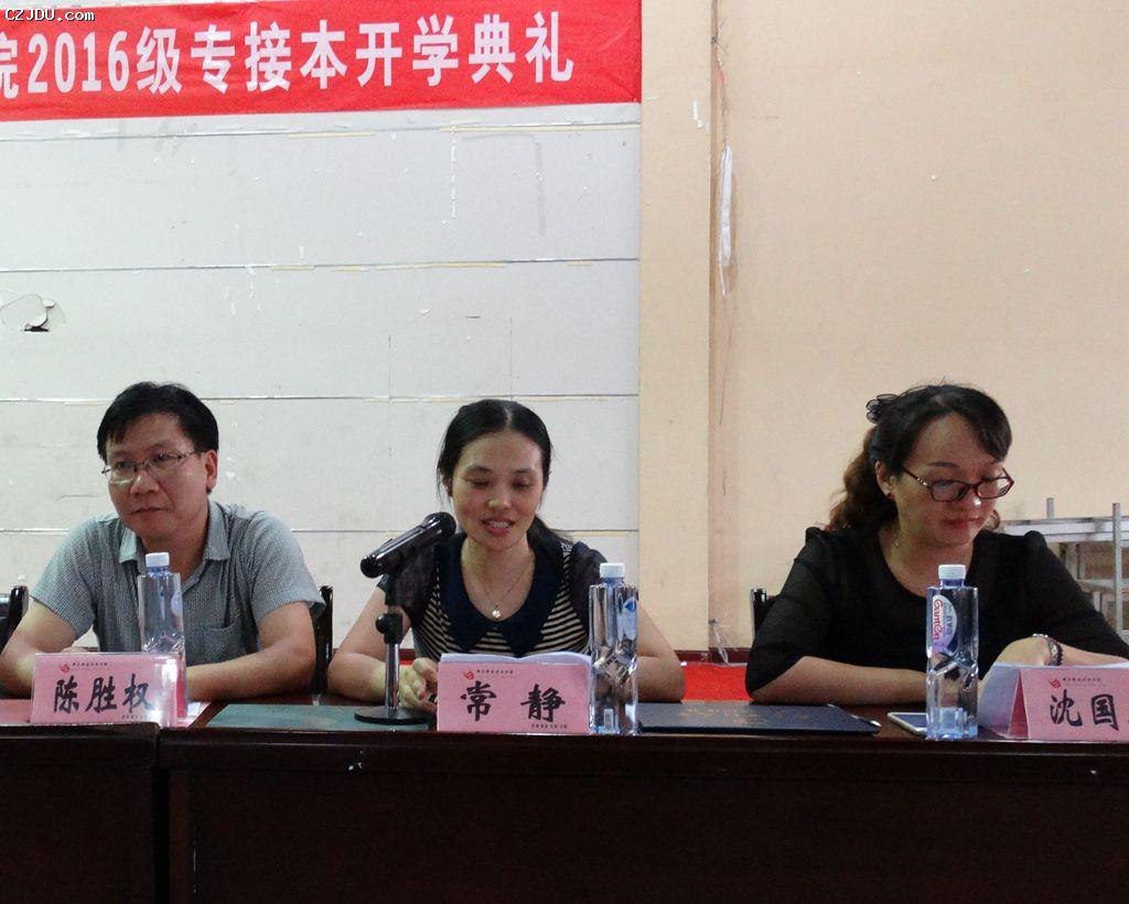 丁高明書記首先在開(kāi)學(xué)典禮上講話,他滿腔熱情地對(duì)專接本新同學(xué)表示歡迎,并勉勵(lì)同學(xué)們刻苦學(xué)習(xí)努力成才。專接本任課教師代表沈初霞老師、專接本老生代表施成凱同學(xué)、專接本新生代表周婷婷同學(xué)先后作了發(fā)言。