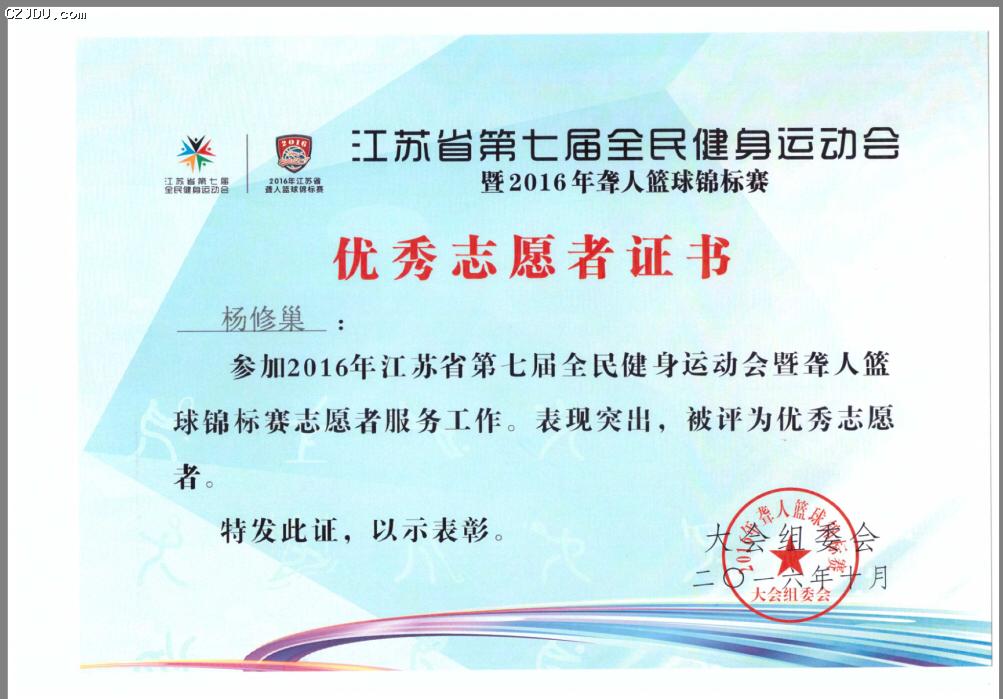 我院許志杰、蔣愷、戈勝、楊修巢、王昊宇、胡金成6名志愿者在此次賽事中榮獲“優(yōu)秀志愿者”稱號。通過此次志愿服務(wù),志愿者不僅收獲了和運動員之間的友誼、尊重和理解,更以踏實肯干的志愿者精神為常州的美好形象勾勒了美好的一筆。