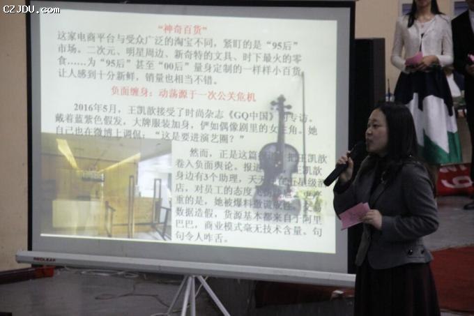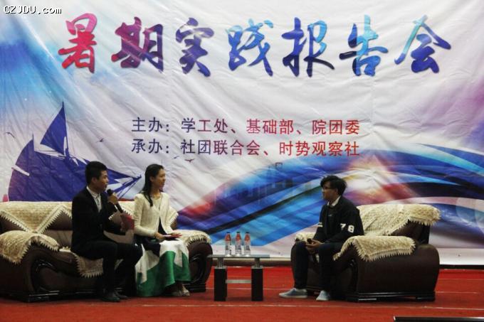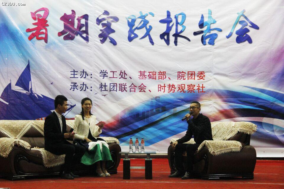 報(bào)告會(huì)在一首動(dòng)人的現(xiàn)代舞中熱烈開場(chǎng)。隨后,李帥和朱迪分享他們創(chuàng)建聚會(huì)吧的故事;吳政澤介紹了大學(xué)生兼職的各種形式和注意事項(xiàng);石健分享了自己在校三年期間投身各學(xué)生組織工作的經(jīng)驗(yàn)事跡;陳凱永介紹了今年暑期社會(huì)實(shí)踐的心得與體會(huì)。之后,指導(dǎo)老師王艷君老師對(duì)本次暑期實(shí)踐報(bào)告會(huì)進(jìn)行了簡(jiǎn)單總結(jié),肯定了時(shí)勢(shì)觀察社社員們的辛苦付出,并就近期的三創(chuàng)實(shí)事進(jìn)行了舉例點(diǎn)評(píng)分析,指明了我院學(xué)生在創(chuàng)業(yè)、創(chuàng)新、創(chuàng)優(yōu)過程中應(yīng)努力和學(xué)習(xí)的方向。