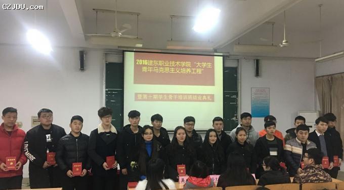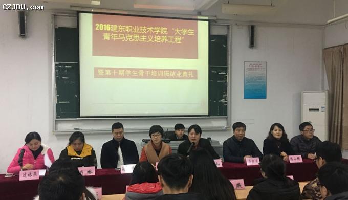 典禮在青春激昂的團(tuán)歌聲中拉開(kāi)了序幕,首先由團(tuán)委書(shū)記過(guò)林燕宣讀2016年建東職業(yè)技術(shù)學(xué)院“大學(xué)生青年馬克思主義者培養(yǎng)工程”暨第十期學(xué)生骨干培班結(jié)業(yè)情況,此次培訓(xùn)班自10月27日開(kāi)班典禮開(kāi)始,至今歷時(shí)2個(gè)月,共授課六次,分別是: