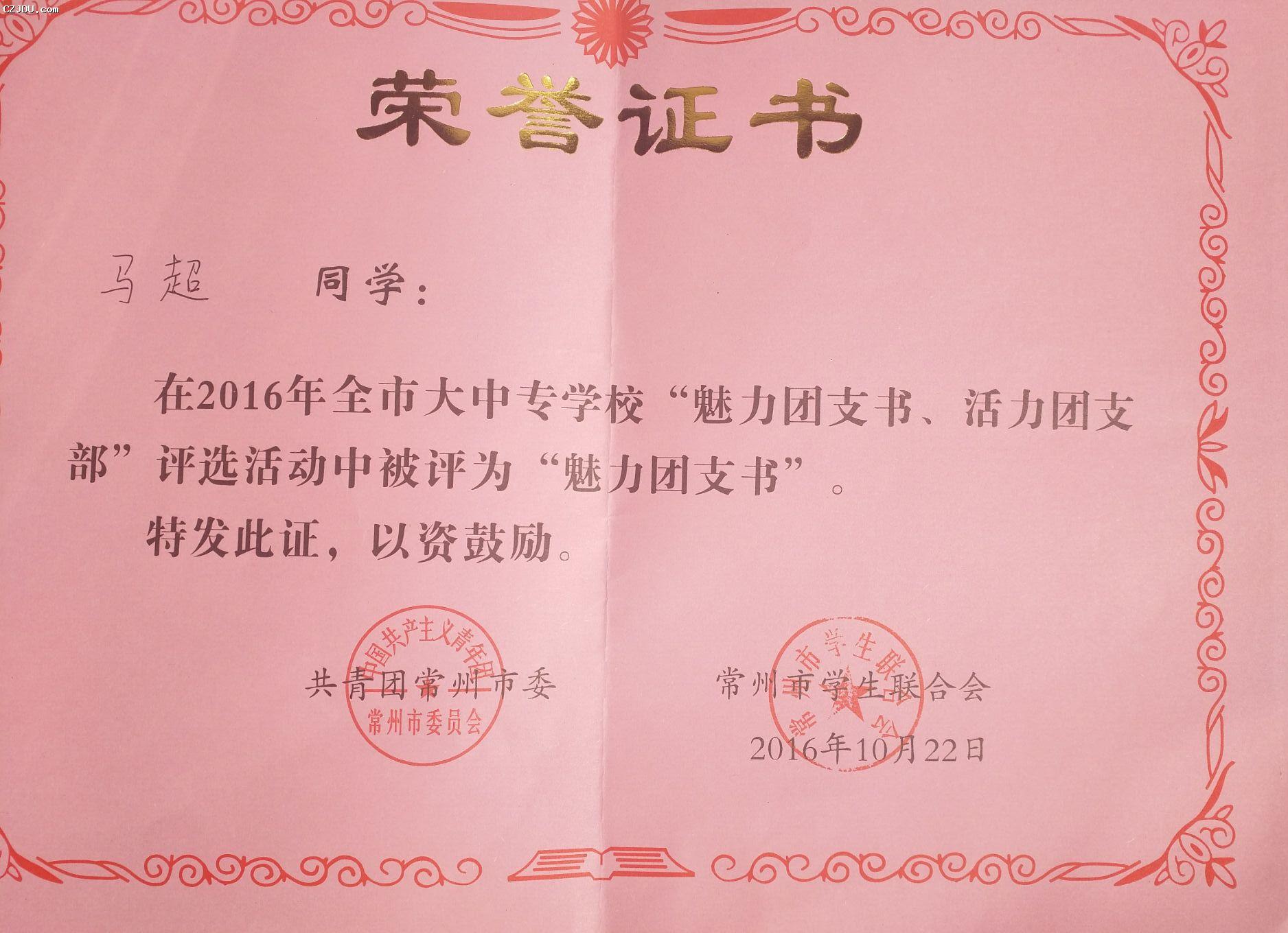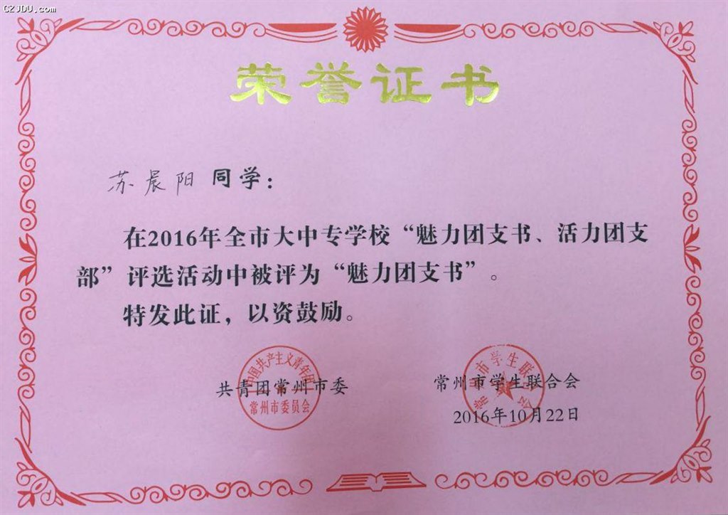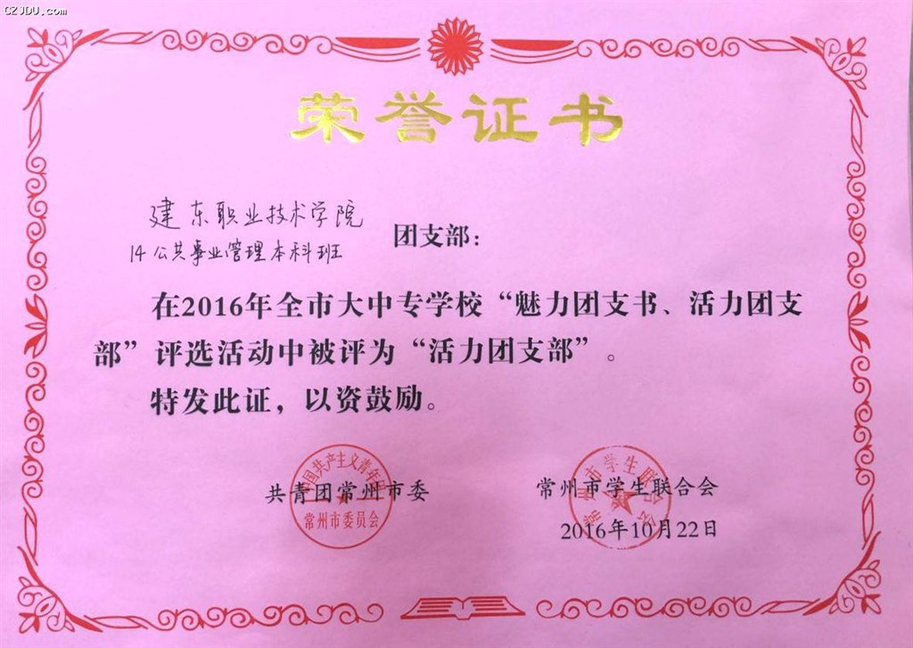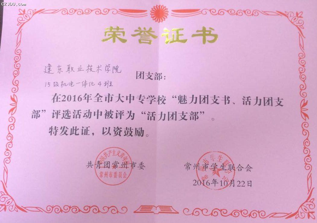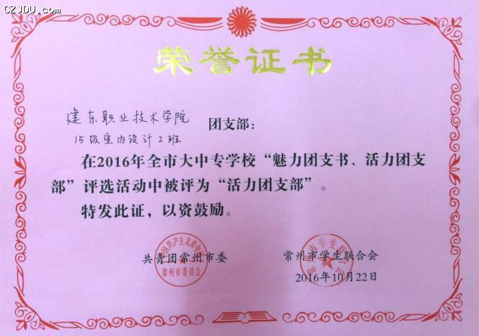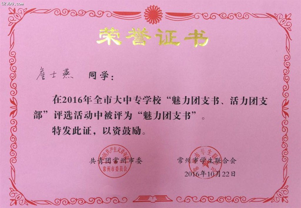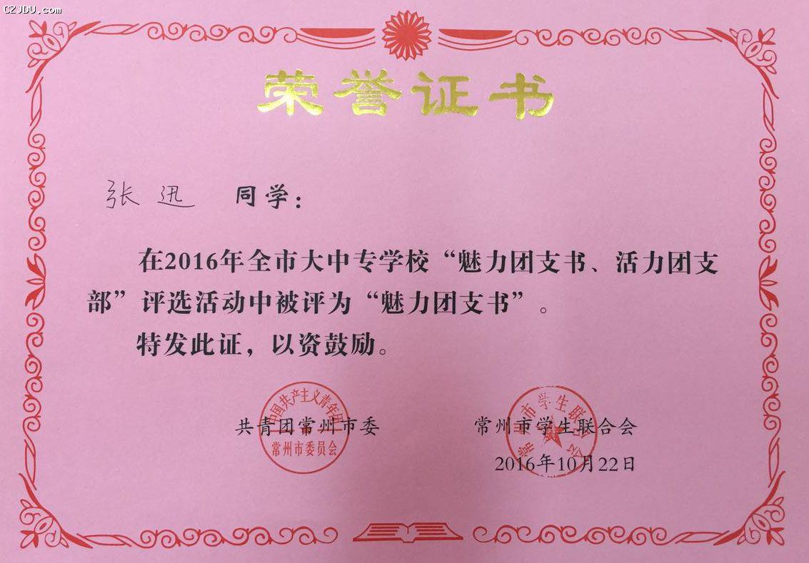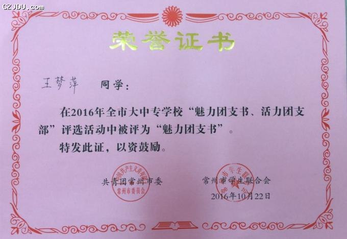 喜報:我院優(yōu)秀學(xué)生、團支部榮獲2016年度常州市大中專學(xué)?!镑攘F支書”“活力團支部”榮譽稱號