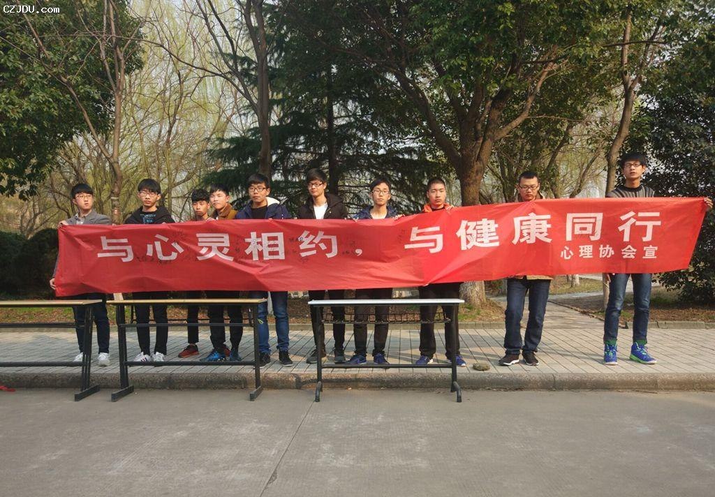 中午,心理協(xié)會成員在一號教學(xué)樓樓下拉起“與心靈相約,與健康同行”的橫幅,向路過的學(xué)生介紹相關(guān)心理健康知識,并邀請同學(xué)們在橫幅上面簽字留念。