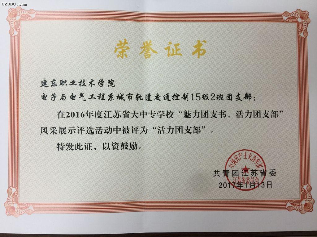 近日,共青團(tuán)江蘇省委發(fā)布了《關(guān)于表彰2016年度江蘇省大中專(zhuān)學(xué)?!镑攘F(tuán)支書(shū)”、“活力團(tuán)支部”的決定》,表彰了2016年度江蘇省大中專(zhuān)學(xué)?!镑攘F(tuán)支書(shū)”、“活力團(tuán)支部”。經(jīng)學(xué)校組織推薦和專(zhuān)家嚴(yán)格評(píng)審,全省共有100位團(tuán)支部書(shū)記被授予“魅力團(tuán)支書(shū)”稱(chēng)號(hào),共有300個(gè)團(tuán)支部被授予“活力團(tuán)支部”稱(chēng)號(hào)。我院電子與電氣工程系15級(jí)城市軌道交通控制2班團(tuán)支部被評(píng)為江蘇省“活力團(tuán)支部”。