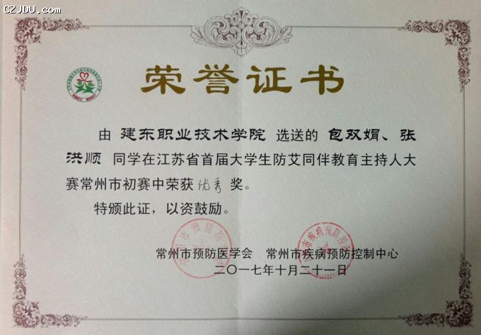本次比賽共有來(lái)自常州市轄區(qū)疾控中心、常州市8所大中專院校推薦的9支參賽隊(duì)伍,我院優(yōu)秀學(xué)生代表張洪順、包雙娟前往參加了本次比賽。經(jīng)過(guò)視頻短片、才藝展示、案例分析等三個(gè)環(huán)節(jié)激烈的角逐,我院學(xué)生代表獲得了優(yōu)秀獎(jiǎng)的好成績(jī)。