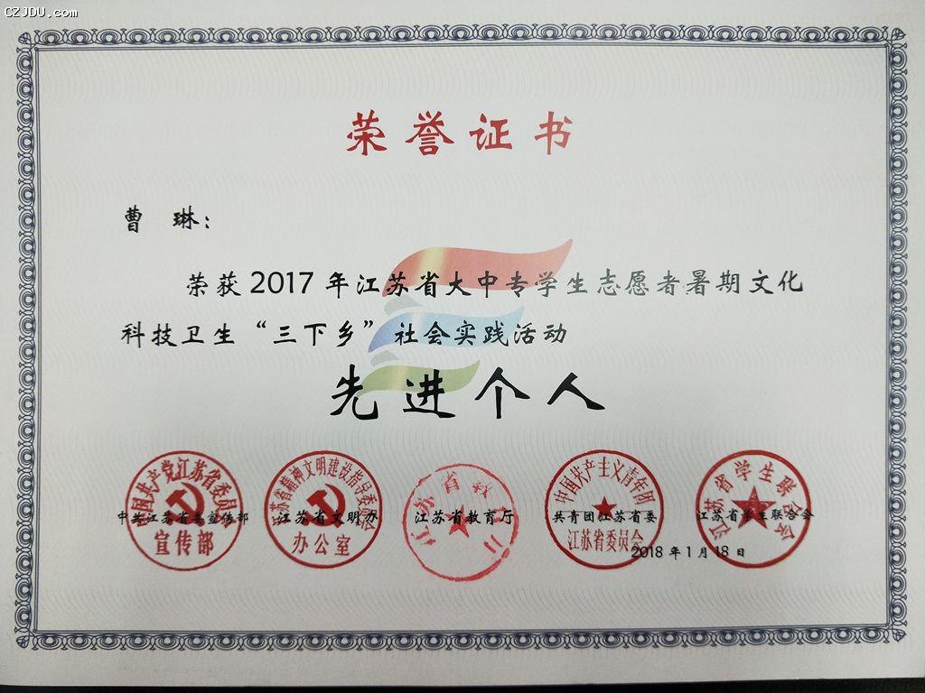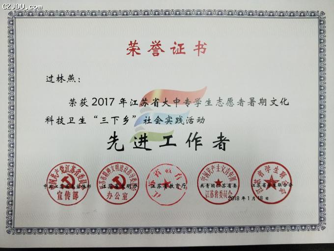 近期,江蘇省委宣傳部、省文明辦、省教育廳、團省委、省學聯(lián)通報表揚了2017年江蘇省大中專學生志愿者暑期文化科技衛(wèi)生“三下鄉(xiāng)”社會實踐活動優(yōu)秀團隊、先進工作者和先進個人。我院青年志愿者協(xié)會的“筑夢西倉,振翅翱翔”志愿者項目榮獲優(yōu)秀團隊榮譽稱號。團委書記過林燕榮獲2017年江蘇省大中專學生志愿者暑期“三下鄉(xiāng)”社會實踐活動先進工作者榮譽稱號。15級商務英語班學生曹琳榮獲2017年江蘇省大中專學生志愿者暑期“三下鄉(xiāng)”社會實踐活動先進個人榮譽稱號。