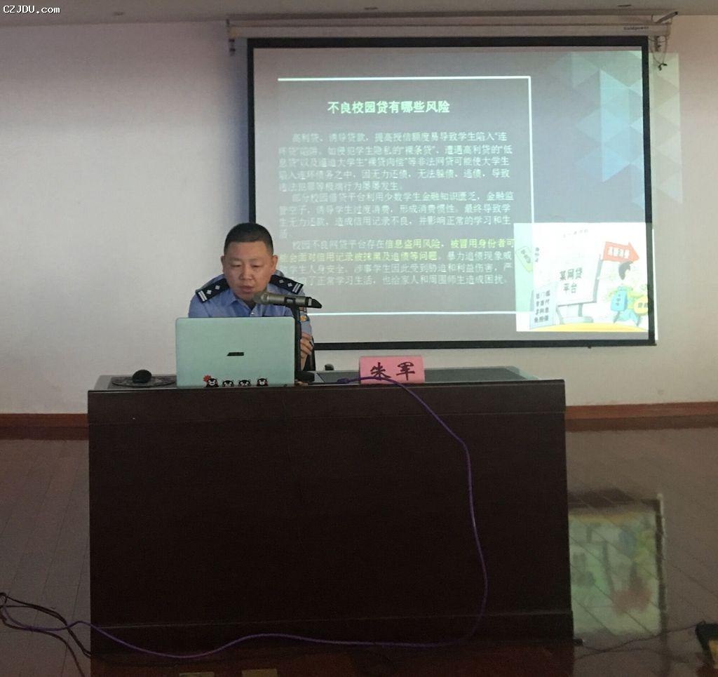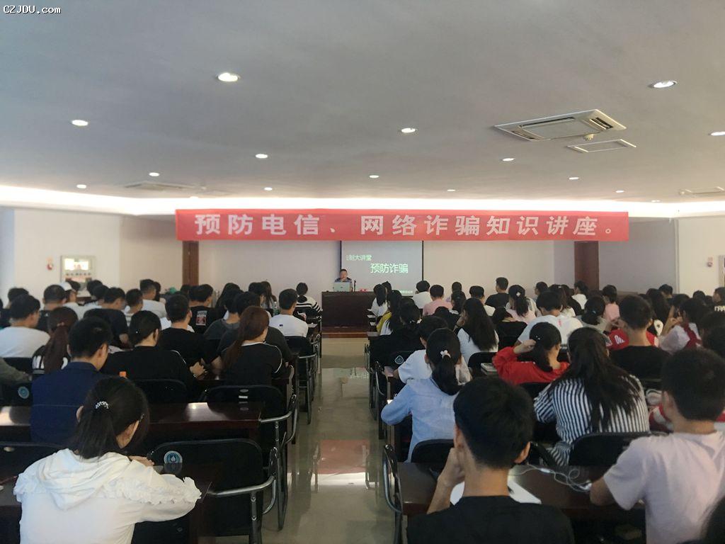 為提升2018級新生預(yù)防電信網(wǎng)絡(luò)詐騙的能力,增強(qiáng)安全防范意識,切實(shí)保障廣大學(xué)生的利益,維護(hù)校園安全穩(wěn)定,9月18日10:00,由院學(xué)工處主辦的“預(yù)防電信網(wǎng)絡(luò)詐騙安全知識講座”在報(bào)告廳舉行,院學(xué)工處邀請了常州市公安局高新區(qū)分局新橋派出所朱軍所長主講。