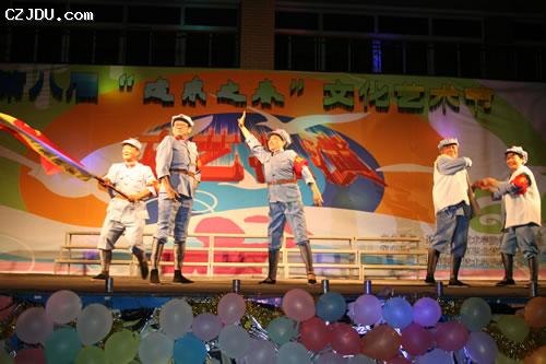 本場晚會由學(xué)生工作處主辦、院團(tuán)委承辦,演出人員由在校學(xué)生、輔導(dǎo)員組成,還特別邀請了常州市關(guān)工委老戰(zhàn)士藝術(shù)團(tuán)友情演出。院黨委書記范永法同志在演出前的致辭中,代表學(xué)院對本屆藝術(shù)節(jié)的成功舉辦表示熱烈的祝賀,向在藝術(shù)節(jié)中作出貢獻(xiàn)的各位老師表示衷心的感謝,向前來我院參加友情演出的常州市關(guān)工委老戰(zhàn)士藝術(shù)團(tuán)表示崇高的敬禮!