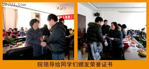 戎處長總結(jié)講話之后,進行了簡短的頒獎形式,受上海餐飲協(xié)會委托,范書記、吳院長、戎處長給52名勤工助學的同學頒發(fā)了榮譽證書。