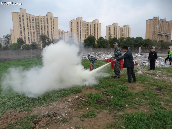 疏散演練結(jié)束后,由教官帶領學生進行了滅火演習,后勤保衛(wèi)處王成龍科長講解、示范了如何正確使用滅火器。在后勤保衛(wèi)處老師的指導下100余名學生都順利完成滅火任務。
