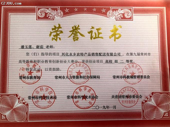 創(chuàng)新創(chuàng)業(yè)大賽由常州市教育局、常州市人力資源和社會保障局等六部門共同主辦,旨在推進(jìn)全市高校和職業(yè)學(xué)校創(chuàng)新創(chuàng)業(yè)教育快速發(fā)展,增強(qiáng)學(xué)生創(chuàng)新、創(chuàng)業(yè)的意識和實(shí)踐能力,搭建起創(chuàng)新創(chuàng)業(yè)的交流和展示平臺。我院參賽隊(duì)伍積極備戰(zhàn),經(jīng)過激烈角逐,由經(jīng)管專業(yè)潘玉蓮、謝茹老師指導(dǎo),陳悅、施冠毅、龔晶晶組成的創(chuàng)業(yè)團(tuán)隊(duì),提交的《興化水鄉(xiāng)農(nóng)特產(chǎn)品銷售配送有限公司》項(xiàng)目入圍現(xiàn)場答辯決賽環(huán)節(jié)。