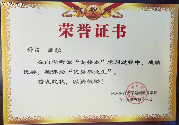 我院專接本審計學專業(yè)3名畢業(yè)生榮獲“優(yōu)秀畢業(yè)生”稱號