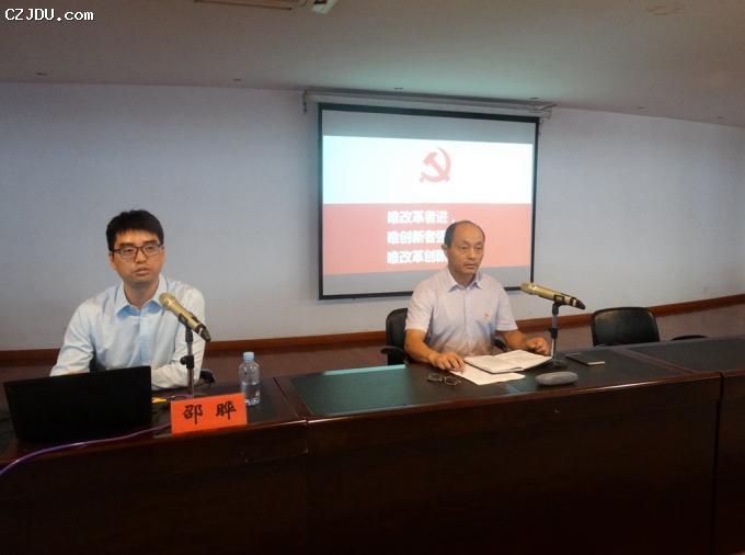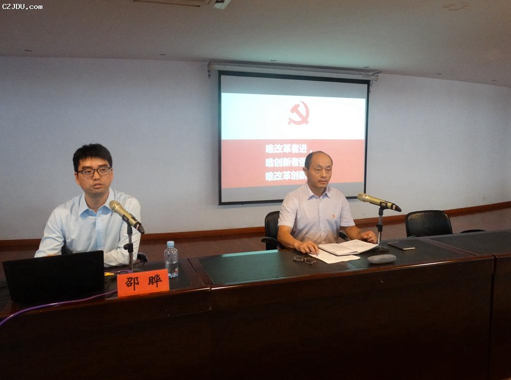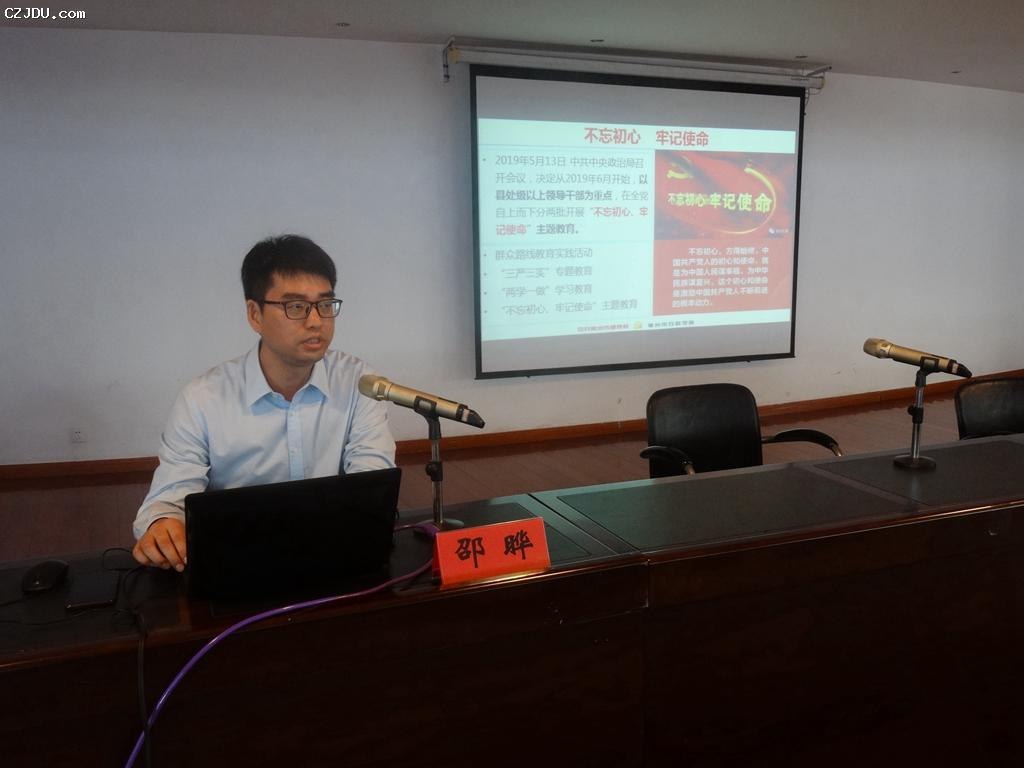10月10日,我院邀請中共常州市委黨校副教授邵曄為大家作了一場“不忘初心、牢記使命—學深悟透習近平新時代中國特色社會主義思想”專題輔導報告會。常州市委教育工委“不忘初心、牢記使命”第六巡回指導組副組長、市教育局終身教育處處長丁皓、院長于再、黨委書記孫利兵、副院長吳建東、黨委委員、院長助理鄭秋平,學院科級以上干部和全體黨員到會聽取了邵教授的輔導報告。 邵曄副教授以扎實的專業(yè)素養(yǎng)、豐富的授課經驗,從“不忘初心、牢記使命”主題教育總要求、根本任務、具體目標、具體要求、具體落實,第二批主題教育特色出發(fā),引出中國共產黨人初心和使命,通過“從理論中探尋黨的初心和使命”、“從歷史中重溫黨的初心和使命”、“在實踐中踐行黨的初心和使命”三個層面講解了 中國共產黨人為實現(xiàn)初心和使命的奮斗歷程,提出踐行黨的初心和使命要求做到堅定理想信念不動搖,始終堅持對黨忠誠不渝,始終堅持以人民為中心,始終保持共產黨員的政治本色。邵曄副教授的輔導報告內涵豐富,深入淺出,為學深悟透習近平新時代中國特色社會主義思想啟發(fā)了思路。 黨委書記孫利兵主持報告會,孫書記代表學院對邵教授的精彩報告表示感謝,并對學院“不忘初心、牢記使命”主題教育深入開展提出要求,第一、牢牢把握“守初心、擔使命、找差距、抓落實”的總要求,努力實現(xiàn)理論學習有收獲、思想政治受洗禮、干事創(chuàng)業(yè)敢擔當、為民服務解難題、清正廉潔作表率的目標。第二,“原原本本學、認認真真悟”。以理論滋養(yǎng)初心、以理論引領使命,使科學理論在內心深處鑄魂、扎根,提高真信篤行、知行合一的意識和能力,進一步增強“四個意識”、堅定“四個自信”、做到“兩個維護”。第三,學和做結合起來,查和改貫通起來。推動學習教育、調查研究、檢視問題、整改落實有機融合、貫穿始終、推進學院事業(yè)的發(fā)展。 邵曄副教授作“不忘初心、牢記使命”主題教育輔導報告 與會人員專心聽取報告 黨委書記孫利兵主持報告會