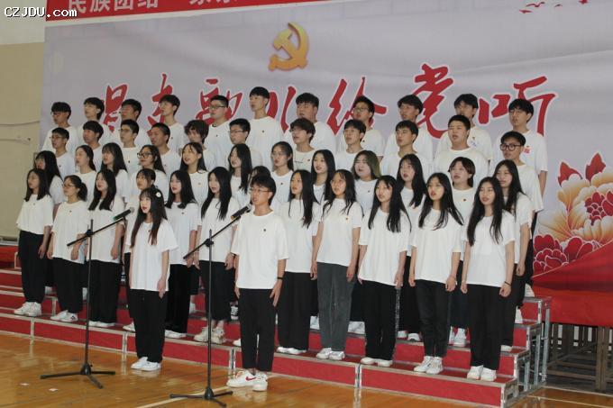 參加本次比賽的八支參賽隊身著整潔統(tǒng)一的服飾,迅速有序地進場,為在場觀眾演唱了《唱支山歌給黨聽》、《我和我的祖國》、《十送紅軍》、《紅色的贊歌》等膾炙人口的經(jīng)典紅歌。在演唱過程中,指揮動作大方得體,有較好的歌曲表現(xiàn)力,參賽學(xué)生歌曲齊唱部分聲音整齊,歌聲高亢宏亮,用滿腔的熱情表達出對黨和祖國的熱愛。一首首革命紅歌,感染了在場的每一位師生。