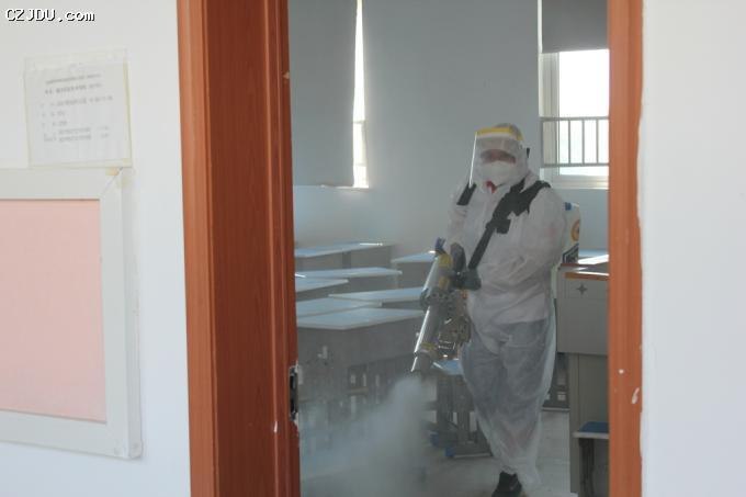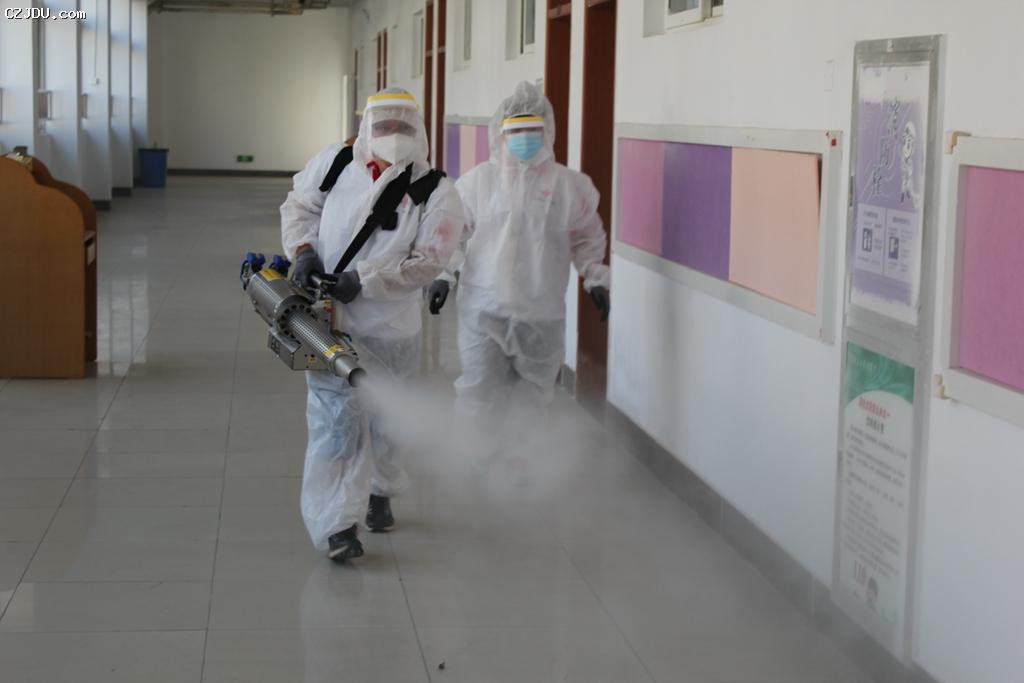 為有效預防新型冠狀病毒肺炎疫情,全力做好新學期疫情防控工作,保障全院師生身體健康安全,2021年9月26日上午,由后保處負責,天寧區(qū)紅十字應急救援隊承辦,一行8人攜專業(yè)消殺設備對我院重點場所進行全面消殺作業(yè)。