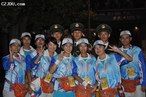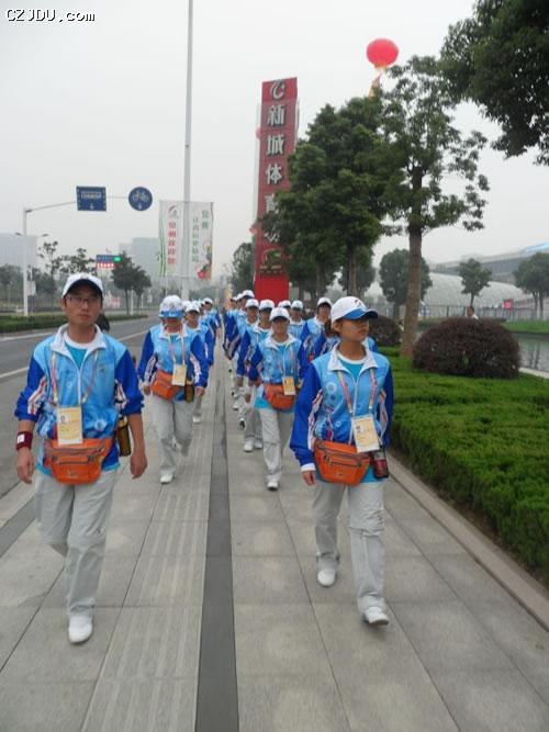 為把本屆運(yùn)動會辦成“最成功、最圓滿、最精彩、最難忘”的一屆省運(yùn)會的共同目標(biāo)而共同奮斗,我校有250多名志愿者參與了省運(yùn)會開幕式的志愿服務(wù),他們身著統(tǒng)一的藍(lán)色志愿者運(yùn)動服、頭戴白色志愿者帽子,彬彬有禮地為內(nèi)場引導(dǎo)、安檢提供貴賓服務(wù),為外場的觀眾交通引導(dǎo),從上午8:00上崗,到晚上11:00下崗,連續(xù)服務(wù)近15個小時,在這之前,他們還放棄了國慶長假休息時間,為精彩省運(yùn)的開幕默默付出著。他們無怨無悔的堅(jiān)守著自己的崗位,他們用微笑對待身邊的每一個人,他們用自己的點(diǎn)點(diǎn)力量溫暖著整個省運(yùn)!