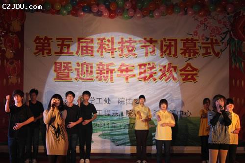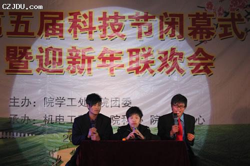 1月7日下午,第五屆大學(xué)生科技節(jié)閉幕式暨迎新年聯(lián)歡會(huì)在報(bào)告廳隆重舉行。至此,歷時(shí)1個(gè)多月的第五屆大學(xué)生科技節(jié)正式落下帷幕。院長(zhǎng)王榮成、黨委書記范永法、副院長(zhǎng)丁高明、副院長(zhǎng)吳如漪、院長(zhǎng)助理孫利兵、學(xué)工處戎釗華處長(zhǎng)、教務(wù)處處長(zhǎng)許心國(guó)、產(chǎn)學(xué)研合作處沈志勤處長(zhǎng)以及各系部負(fù)責(zé)人和部分師生出席了閉幕式。
