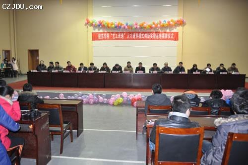 模式創(chuàng)新實(shí)驗(yàn)基地揭牌儀式在我院報(bào)告廳隆重舉行。常州市教育局梅向東副局長、常州市創(chuàng)意產(chǎn)業(yè)基地管理委員會(huì)劉靚副主任、院黨委書記范永法、副院長丁高明、院長助理孫利兵等領(lǐng)導(dǎo)以及企業(yè)專家代表出席了揭牌儀式,吳如漪副院長主持會(huì)議,參加會(huì)議的還有媒體與藝術(shù)設(shè)計(jì)系2010級(jí)全體教師和學(xué)生、電子信息工程系和機(jī)電工程系2010級(jí)參加藝工雙通人才培養(yǎng)模式改革項(xiàng)目的部分學(xué)生及相關(guān)輔導(dǎo)員。
