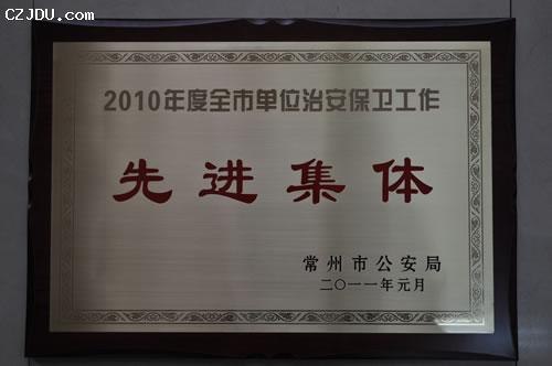 我院保衛(wèi)處獲常州市2010年度治安保衛(wèi)工作先進(jìn)集體榮譽(yù)稱號