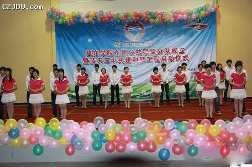 左岸公益聯(lián)盟建東職業(yè)技術(shù)學(xué)院分隊正式成立揭牌儀式暨與藍天三小共建和諧工程啟動儀式于5月11日下午2點在建東學(xué)院報告廳隆重舉行。