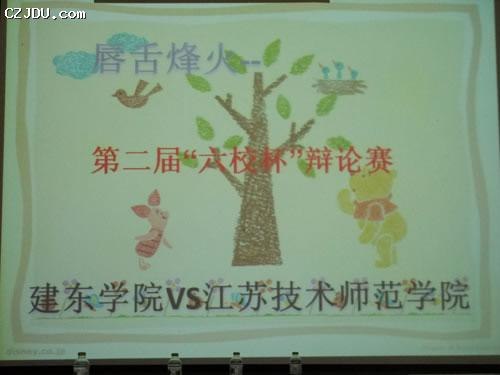 2011年5月20日下午,“唇舌烽火”第二屆六校辯論賽半決賽在常州工學院隆重舉行。建東學院辯論隊伍與江蘇技術(shù)師范學院辯論隊伍作為本場辯論賽的正反方帶來了一場精彩的辯論,本次辯論主題是:高等教育應該寬進嚴出還是嚴進寬出。