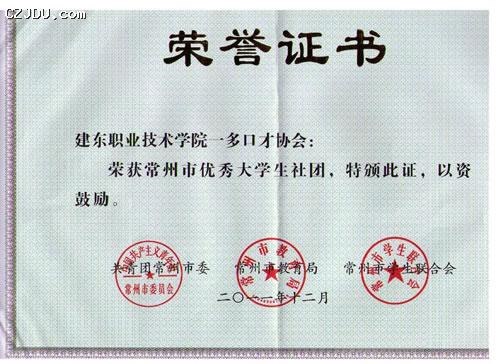 我院一多口才協(xié)會在常州市首屆大學(xué)生創(chuàng)新文化節(jié)優(yōu)秀社團(tuán)評選中榮獲“常州市優(yōu)秀大學(xué)生社團(tuán)”榮譽(yù)稱號