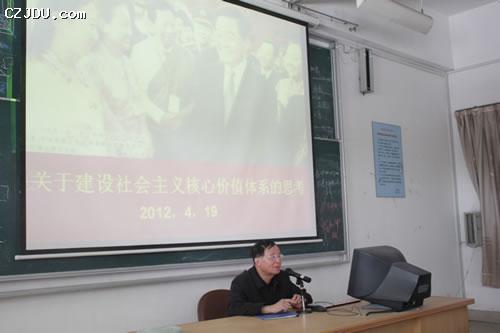 開班儀式后,黨委書記范永法以《社會(huì)主義核心價(jià)值觀的理論思考和踐行研究》為廣大學(xué)員講了精彩的第一課。范書記結(jié)合近年來國內(nèi)外的重大事件和社會(huì)問題,用大量的實(shí)例,生動(dòng)全面地闡明了踐行社會(huì)主義核心價(jià)值體系的時(shí)代緊迫性和重要戰(zhàn)略意義。特別是對社會(huì)主義核心價(jià)值體系做了深刻解讀,講座始終圍繞馬克思主義指導(dǎo)思想,是社會(huì)主義核心價(jià)值體系的靈魂;中國特色社會(huì)主義共同理想,是社會(huì)主義核心價(jià)值體系的主題;民族精神和時(shí)代精神,是社會(huì)主義核心價(jià)值體系的精髓;社會(huì)主義榮辱觀,是社會(huì)主義核心價(jià)值體系的基礎(chǔ)。他要求同學(xué)們要樹立遠(yuǎn)大理想,要陽光做人,要有一顆感恩的心,要立報(bào)效祖國之志。講座內(nèi)容豐富,深入淺出,令人深思,引起了現(xiàn)場學(xué)員的廣泛共鳴。