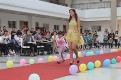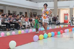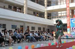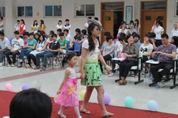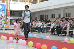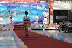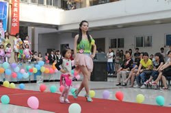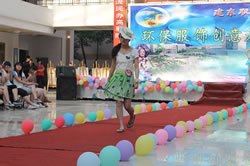 在動感活力的街舞和觀眾的歡呼聲中,比賽正式拉開帷幕。模特們身著自己隊伍設(shè)計的環(huán)保服飾,款款走上舞臺。大方自信的腳步,獨特新穎的服飾設(shè)計,不時贏得觀眾的陣陣掌聲。此次比賽的最大亮點在于衣服的材料和設(shè)計理念,觀眾只要經(jīng)過認真觀察就會驚訝地發(fā)現(xiàn),高雅的白色晚禮服是由廢棄的一次性桌布縫制而成,時尚短裙則是用蚊帳粘接的,醒目耀眼的男裝是廢棄的廣告海報和塑料袋的完美結(jié)合……一些平常生活中的垃圾材料塑料帶、報紙、蚊帳、購物袋、舊光盤等在參賽選手“魔術(shù)”般的變換中生成了一件件華麗多彩的服飾作品。在設(shè)計理念上,參賽者更是別具匠心地將四季、動漫、中國風等因素與環(huán)保主題相結(jié)合,給觀眾帶來一場精彩的視覺盛宴?;顒蝇F(xiàn)場,天潤幼兒園的小朋友們也給我們帶來了精彩的幼兒環(huán)保時裝秀??蓯鄣男∧L兀路f的設(shè)計,極大的沖擊著觀眾們的眼球。