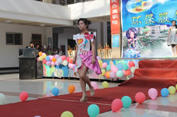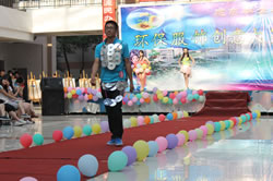 本次環(huán)保服飾創(chuàng)意大賽秉承“變廢為寶”的宗旨,以鼓勵保護環(huán)境和節(jié)約資源為目標,把學習實踐科學發(fā)展觀落實在具體的行動中,展示了當代大學生“保護環(huán)境,從我做起”的綠色環(huán)保理念,以實際行動為建設(shè)資源節(jié)約型社會貢獻力量。