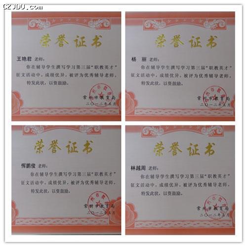 日前,常州市第三屆“職教英才”征文活動(dòng)評(píng)審結(jié)果揭曉,我校共有三篇作品獲獎(jiǎng),其中,二等獎(jiǎng)2篇,分別是11建筑工程系王建偉同學(xué)《輸在起跑,贏在終點(diǎn)》、11級(jí)計(jì)算機(jī)應(yīng)用專業(yè)陶濤同學(xué)《積極演繹人生,成就美好未來——讀《職教新苑》有感》;三等獎(jiǎng)1篇,是11機(jī)電4班趙輝同學(xué)《<職教新苑>:我的良師益友》