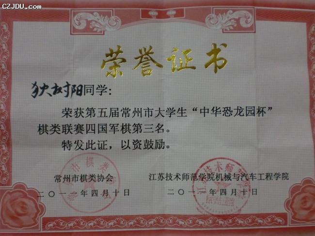 我院棋牌社在常州市第五屆“中華恐龍園杯”高校棋類聯(lián)賽中獲得優(yōu)異成績
