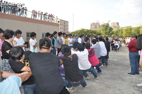 比賽開始,每個同學(xué)都蓄勢待發(fā),比賽氛圍熱烈而緊張,場外的啦啦隊也熱情高漲,為參賽同學(xué)增添了不少信心。隨著裁判員的一聲哨響,比賽正式拉開帷幕。伴隨著啦啦隊“加油,加油”的口號聲,隊員手中的大繩便在雙方之間徘徊,你來我往的僵持著。隊員們個個面紅耳赤,手上青筋暴起,拼盡渾身的力氣,只為證明自己是真正的大力神,而兩邊加油助威的同學(xué)也急的直跺腳,恨不得上去幫一把,將比賽的勝利鎖定在自己班級。