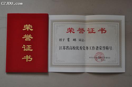 肖琳榮獲2012年江蘇省高校優(yōu)秀黨務工作者榮譽稱號