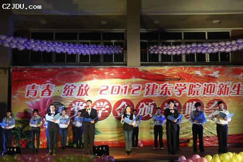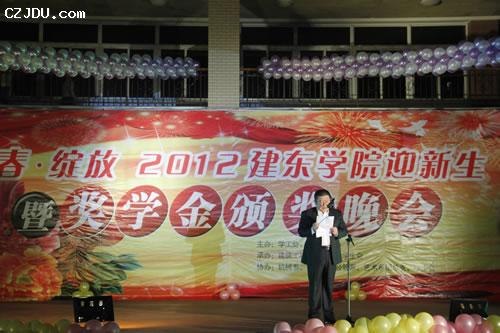 10月31日晚上6時30分,“青春•綻放”2012年建東學(xué)院迎新生暨獎學(xué)金頒獎晚會在信息樓大廳隆重舉行。院長王榮成、黨委書記范永法、黨委副書記、副院長丁高明、副院長孫利兵以及各處室、各系等領(lǐng)導(dǎo)和1000余名新生共同觀看了本次晚會。