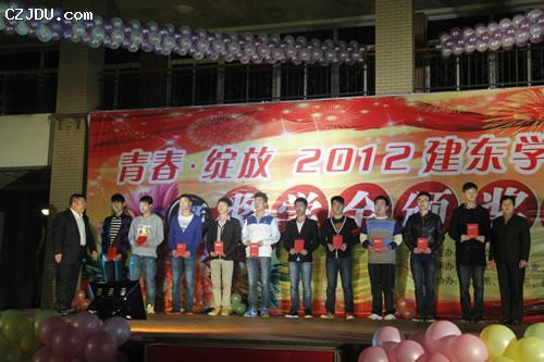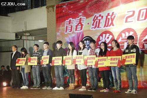在精彩的表演期間,在場領(lǐng)導(dǎo)還為2012年暑期社會活動積極分子、2012年優(yōu)秀學(xué)生干部、2011—2012學(xué)年院綜合獎學(xué)金獲得者、2012年國家勵志獎學(xué)金獲得者、2012年國家獎學(xué)金獲得者進行了隆重的頒獎典禮。