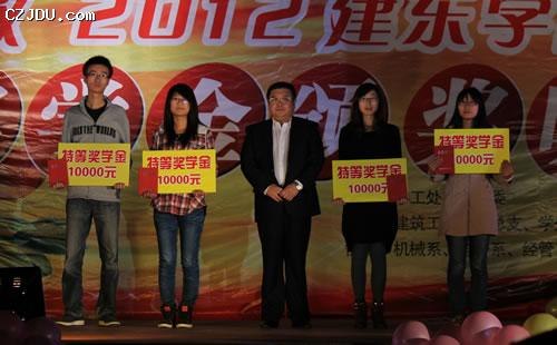 丁院長為2011—2012學(xué)年特等獎學(xué)金獲得者頒獎