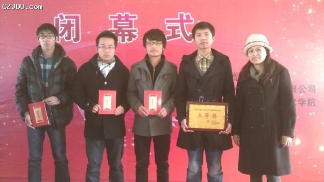 創(chuàng)業(yè)設計大賽一等獎:指導教師蔡月鵬和獲獎學生周甲聰(11會計)、史和平(11會計)、錢凌聰(12工商)、姜培民(12機電)