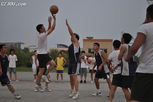 在慶祝教師節(jié)活動期間,學院教工男子籃球隊與來我院承訓的武警水電五支隊官兵在學院籃球場進行一場友誼比賽。王榮成院長也到現(xiàn)場觀看了比賽并為雙方隊員加油助威。