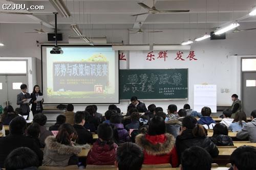 為了貫徹落實(shí)中共中央關(guān)于加強(qiáng)和改進(jìn)大學(xué)生思想政治教育的有關(guān)精神,全面提高大學(xué)生的思想政治素質(zhì),我院學(xué)工系統(tǒng)開展了“形勢與政策”知識競賽活動。競賽由學(xué)工處統(tǒng)一領(lǐng)導(dǎo),思政教研室指導(dǎo)政治理論社團(tuán)——時勢觀察社承辦組織,各系學(xué)工部門積極組織參與,獲得圓滿成功。