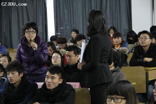 比賽過程中,師生互動也成為活動一大亮點(diǎn)。思政室王艷君主任和團(tuán)委書記季艷老師分別就“復(fù)旦研究生投毒案”和“中國式過馬路”等熱點(diǎn)問題進(jìn)行評析,引起學(xué)生們的共鳴。學(xué)工處戎釗華處長做總結(jié)發(fā)言,對我院學(xué)生活動和大學(xué)生成長成才提出了三點(diǎn)希望:“1、希望今后我院德育實(shí)踐教育能不斷開拓創(chuàng)新,開展更多學(xué)習(xí)型、知識型的第二課堂活動,豐富同學(xué)們的課余文化生活,提高同學(xué)們的綜合素質(zhì)。2、希望同學(xué)們在今后的學(xué)習(xí)生活中能用‘眼睛觀察社會,用實(shí)踐體驗生活’,在學(xué)習(xí)實(shí)踐過程中開拓視野,增長才干!3、希望同學(xué)們今后能更多地參加此類學(xué)習(xí)實(shí)踐活動,帶動學(xué)校良好的學(xué)習(xí)風(fēng)氣,形成良好的學(xué)習(xí)氛圍?!鳖I(lǐng)導(dǎo)的祝愿和希望將活動推向了高潮。